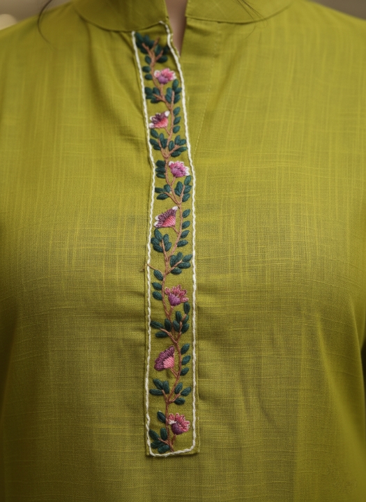4 reviews for Aaryaa Lush Lime Green Cotton Slub Ensemble Kurta Set